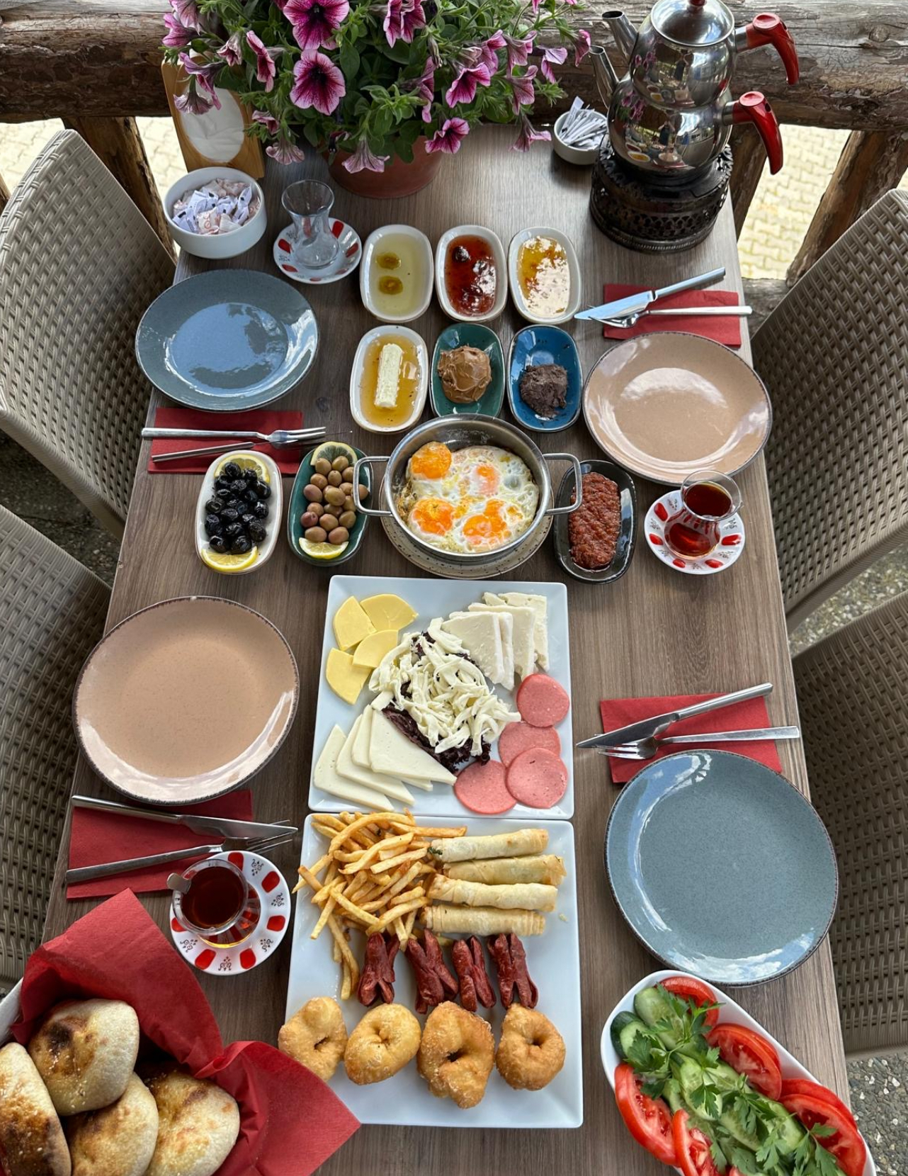 Kahvaltımız kişi başı servis edilmektedir. Tek kişilik kahvaltı verilmemektedir. ( GÖRSELDEKİ KAHVALTI 4 KİŞİLİKTİR)